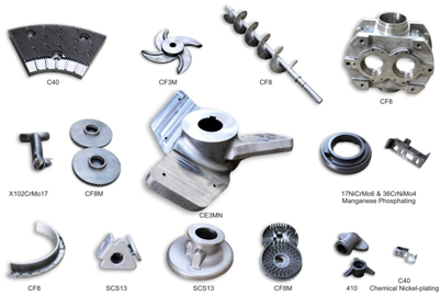 Maschinenteile für die Automobil-, Textil- und Maschinenindustrie.